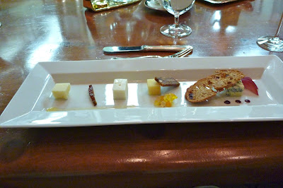 Monday: Slept in a bit and went to Boma for breakfast. Since we had to come back and change for dinner we were not going to spend a ton of time in the parks today. We drove to Epcot. We went to Test Track first. After that we went to the World Showcase and rode Maelstrom (skipping the film). We then tooled around a bit until La Cava de Tequila opened. we got our walking beverages and made our way around the showcase again. We tried a napoleon from the French bakery and did not think it was that good. After some more strolling and a break in Rose and Crown we left Epcot to go get ready for dinner. We had a 5pm seating at Victoria and Albert's Chef's Table.