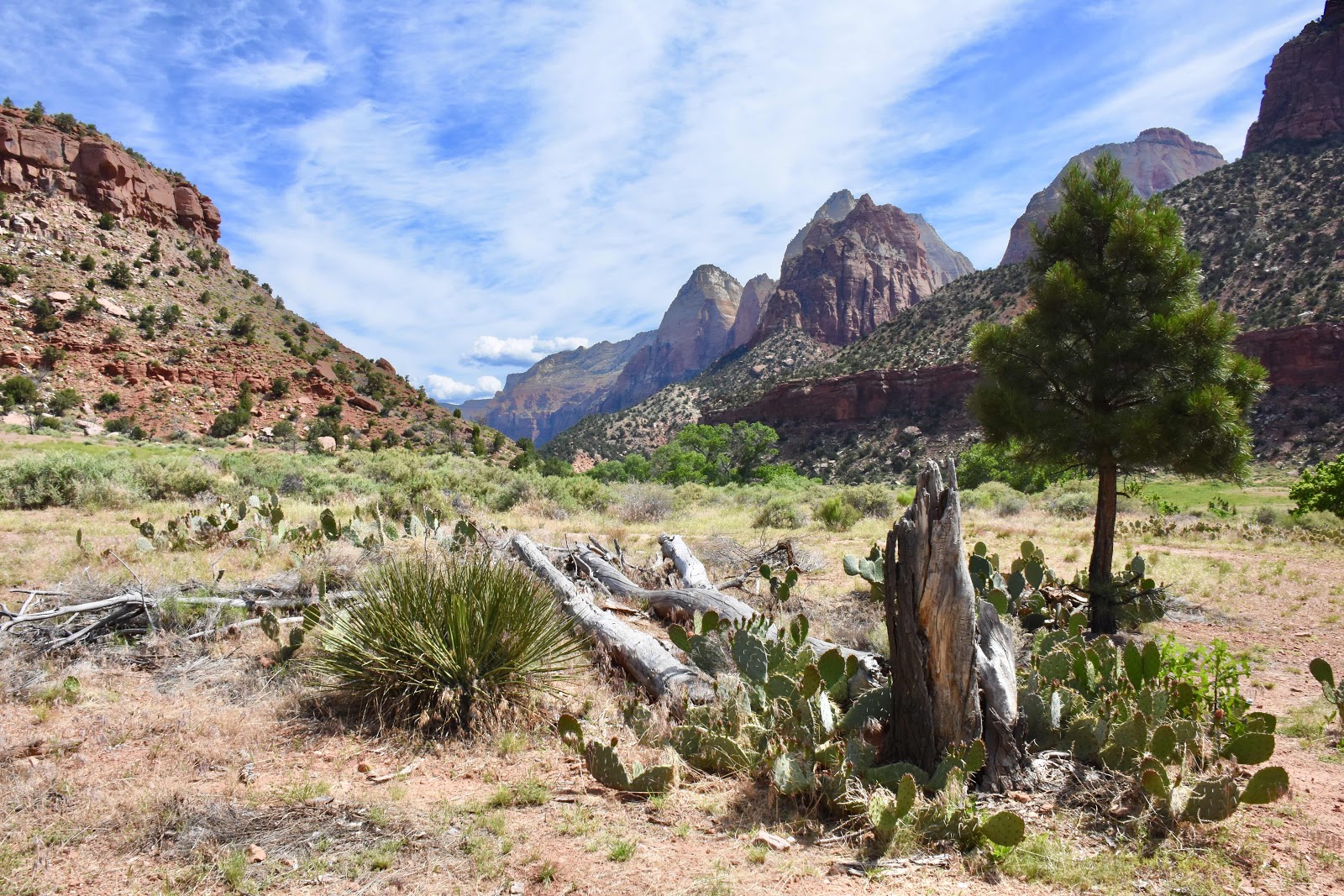 We took the Archeology Trail to the Pa'rus Trail in order to make our way to the museum for the park movie. The turn-off for the museum wasn't well-labeled and we ended up walking way more than we intended. Our easy walk still turned into a dash so we wouldn't miss the movie start time. We did some more exploration around the area, including the easy portion of Angel’s Landing Trail before heading to the Zion Lodge for lunch. We chose the sit-down option on the 2nd floor deck which gave us great views of the mountains. The lodge served the perfect Prickly Pear Margarita - it was in a small martini glass so the balance to tequila to mix was perfect.